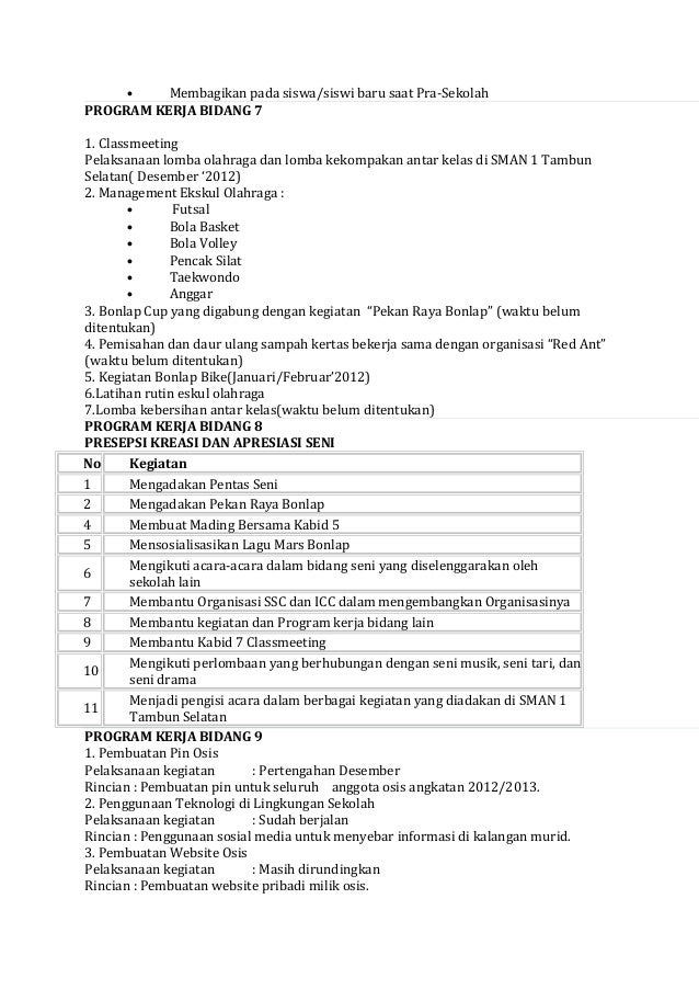 Program Kerja Osis Bidang Olahraga